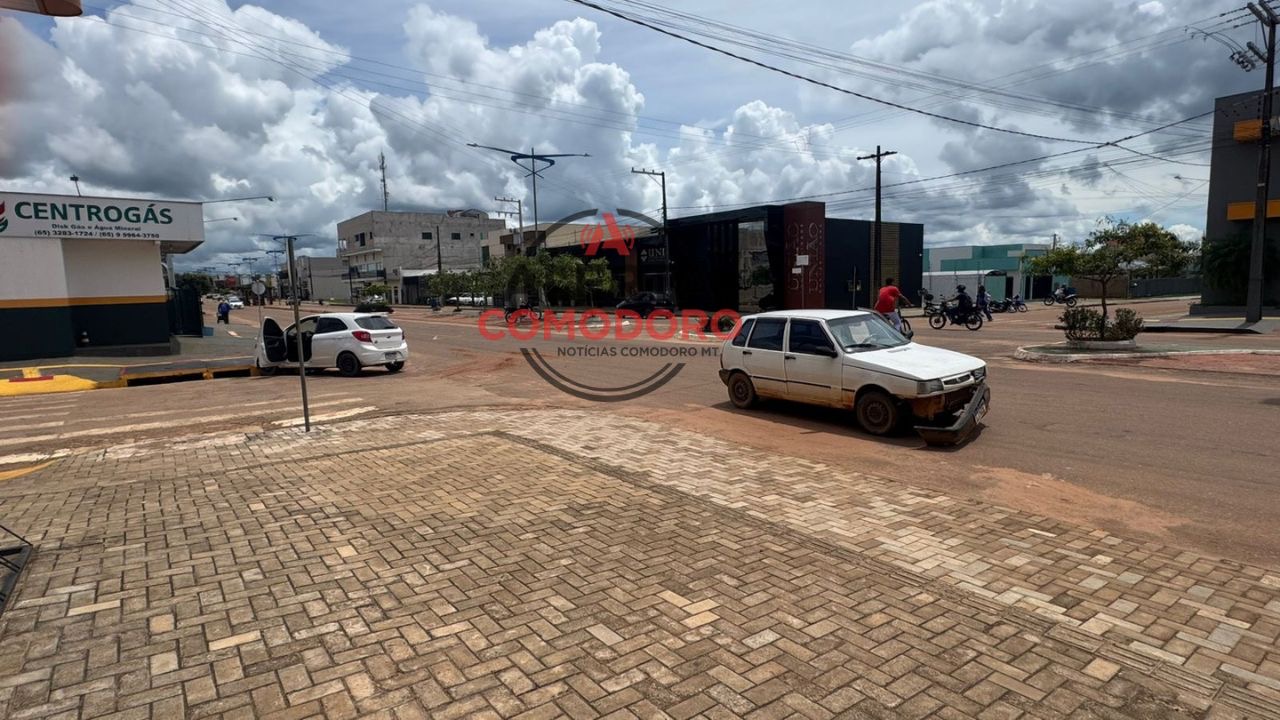 Um acidente de trânsito envolvendo dois veículos foi registrado na manhã desta segunda-feira na rotatória localizada no cruzamento da Avenida Prefeito Valdir Masutti com a Rua Amazonas, em Comodoro.