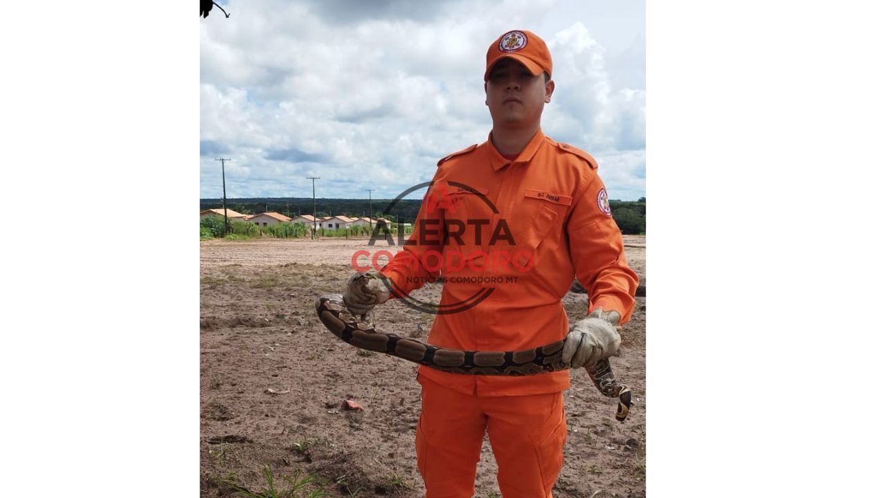 Na manhã desta semana, o Corpo de Bombeiros Militar de Comodoro realizou o resgate de uma cobra da espécie jiboia (boa constrictor) no bairro Jonas Pinheiro, após ser acionado por moradores que avistaram o animal em área urbana.